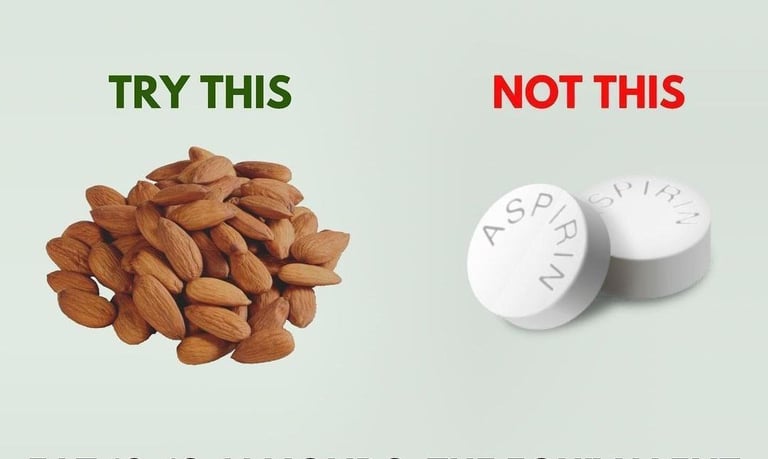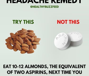 HEADECHE? Eat 12 Almonds the equivalent of two Aspirins, next time you have headeche