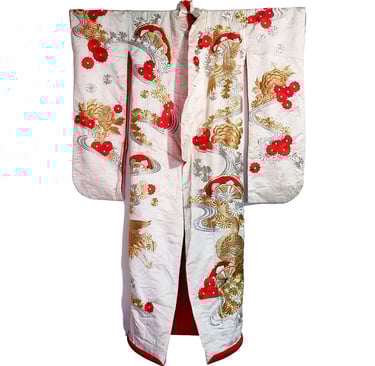 A shiromuku is a traditional white kimono worn by brides in Japan. In Japanese etymology, the word “shiro” means white, and “moku” means plain, so the name “shiromuku” refers to the kimono’s white and plain appearance. The shiromuku is considered the most formal type of kimono and is worn for traditional Japanese weddings.