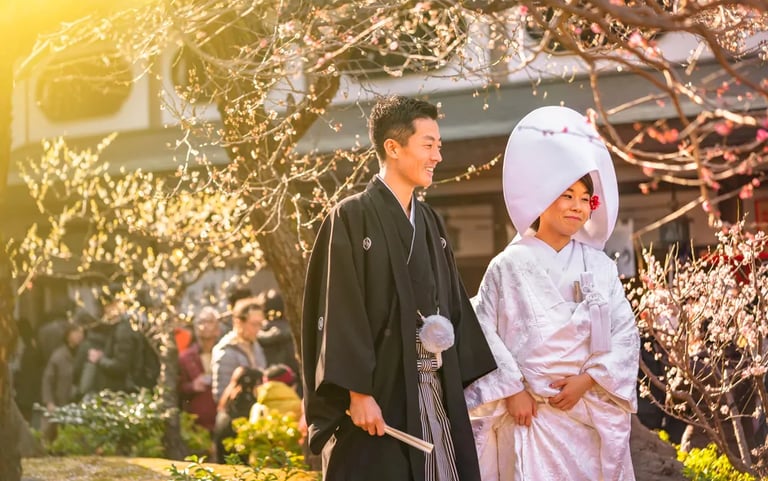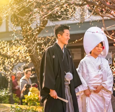 Black: is considered a symbol of formality and is often used for formal occasions such as funerals, traditional ceremonies, and formal events. A groom will wear a black kimono called “montsuki haori hakama” as a symbol of his status and family.