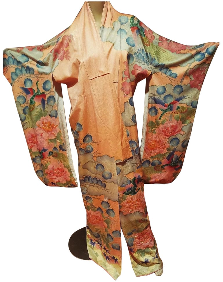 Silk is the traditional material used for high-end kimono, such as those worn for formal occasions like weddings, coming-of-age ceremonies, and tea ceremonies. These silk kimono are often hand-painted or embroidered with intricate designs, making them more valuable and treasured.