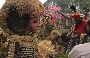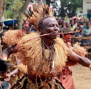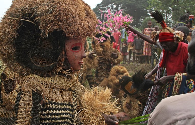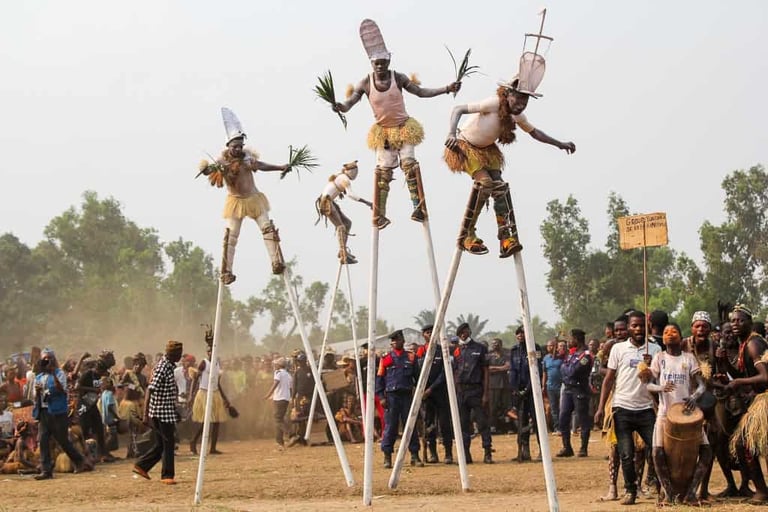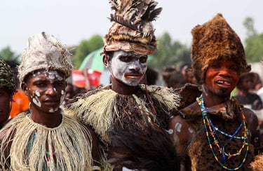 Gungu festival where various tribes gather, including the Pende tribe and those of the Kuba kingdom.