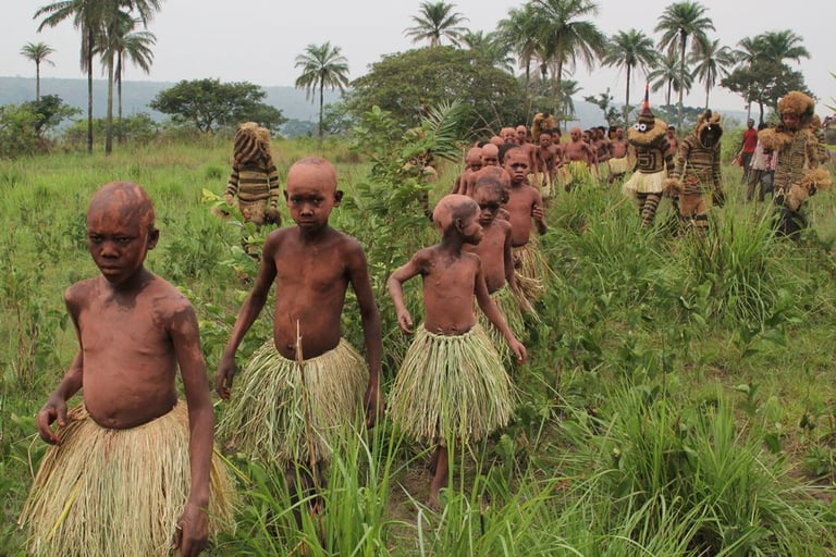 At each initiation, several hundred boys may gather around the masters or Nganga Mukanda, among whom the Kele, the great initiatory master, stands out.