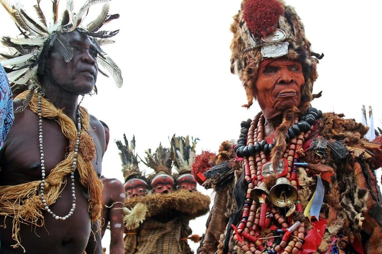 Spirits that have been abandoned can cause ills in the family, such as illness or misfortune. Only healers and soothsayers can determine the source of the illness and decide how to calm the spirit that causes it. Of course, everything is done through rituals that include dances, songs, music and masks.