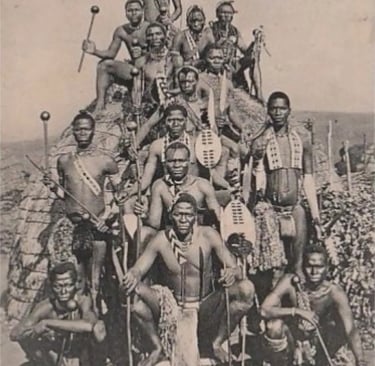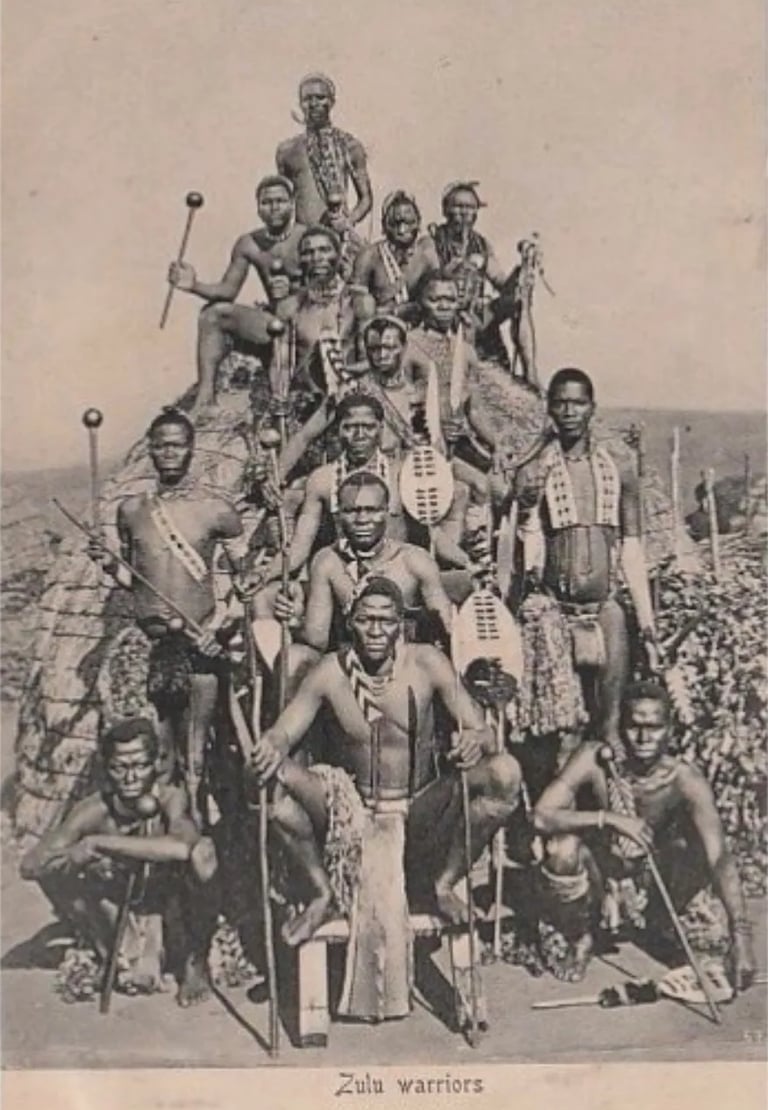 Group of Zulu warriors, South Africa, c. 1880. Original print via Delcampe.net archives (Public Domain).