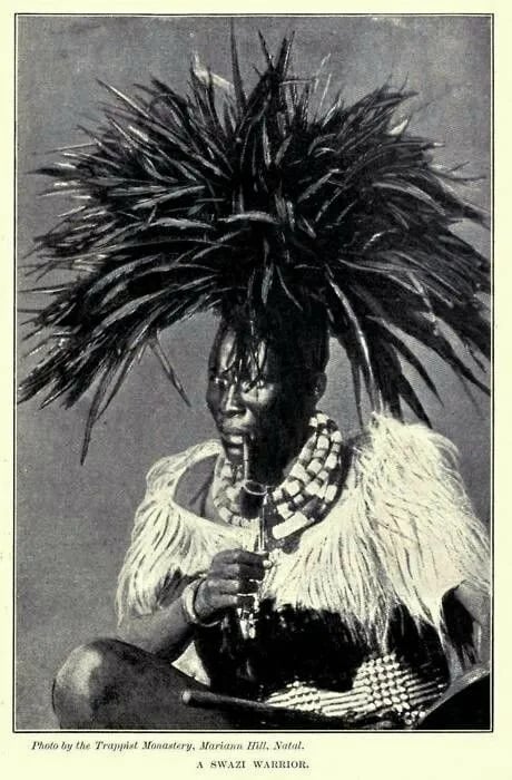 Portrait of a Swazi warrior in ceremonial headdress, ca. 1884–1899. Photo by Trappisten Missie Mari-annhill. Source: Museum Volkenkunde.