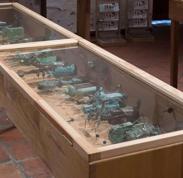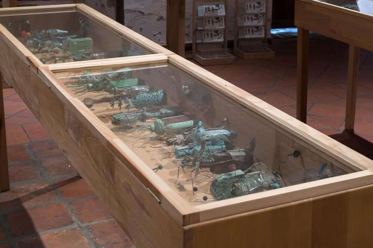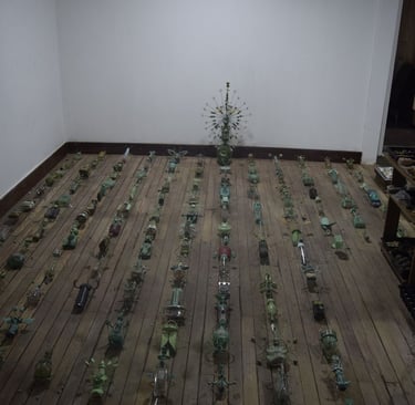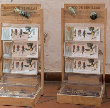 The work "Seed Bank" subtracts from the ancestral, urban, peasant, homemade, latifundia and smallholding memory the life itself through the essential seeds, searched, bartered, sown, compiled, exchanged, traded, explored, tracked, obtained, endemic and some of them travelers, all to form a work of art, with 400 "incepts" for coming from the concept; "Incepts" made with banal garbage to fulfill a protective function of conservation and preservation, a natural treasure that overlaps with reality; this scientific, natural and factually artistic concept leads us to many questions, is it possible that from art we save the world, it will be very pretentious this search with this seed bank; science, research, natural rhythms have made it possible that the landscape can be put in boxes, that art can serve as a channel of conscience in the face of so much banality and make this "useless" recovered garbage become another form of container, much more intelligent than consuming its aroma unconsciously, to then be part of the raw material for something as profound as preserving the plant life of one of the places with the greatest biodiversity on the planet.