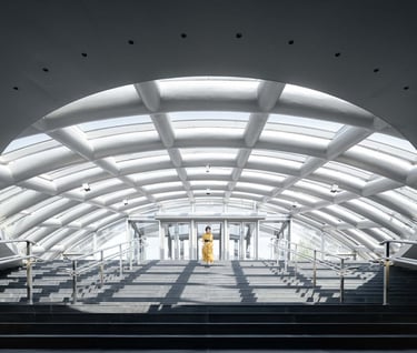 The studio used steel to form the structure of the thin-shell concrete roof covering the museum, which spans over 10,000 square meters.