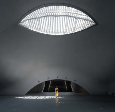 Two eye-shaped openings on the roof introduce natural lighting into the underground space