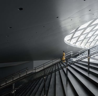 The choice to use fair-faced concrete and a large-span structure, commonly found in industrial buildings, pays homage to the city's industrial past and creates a vast open exhibition space.